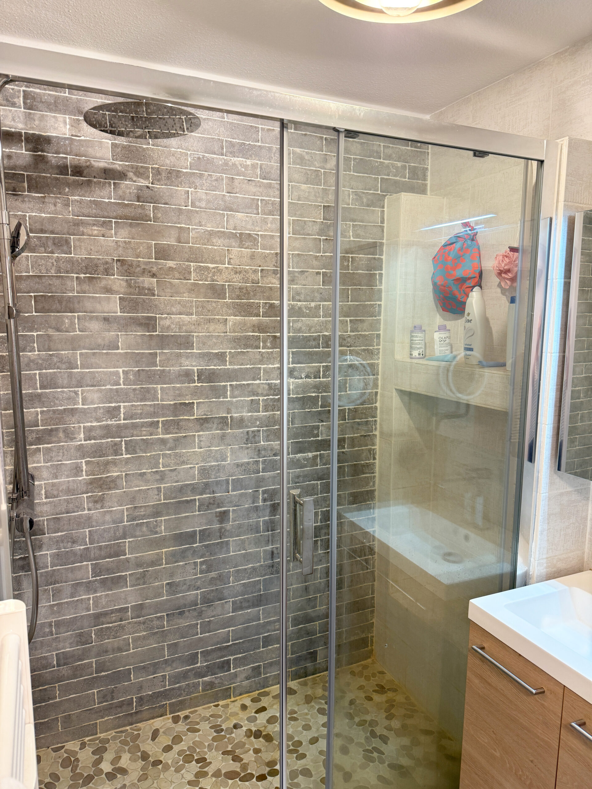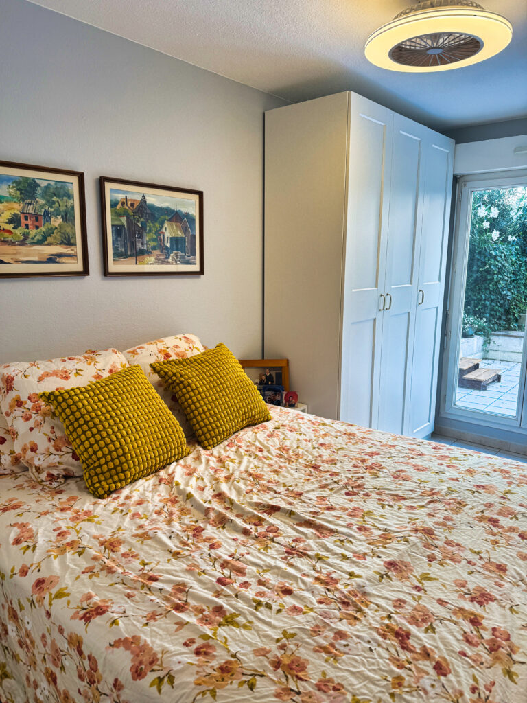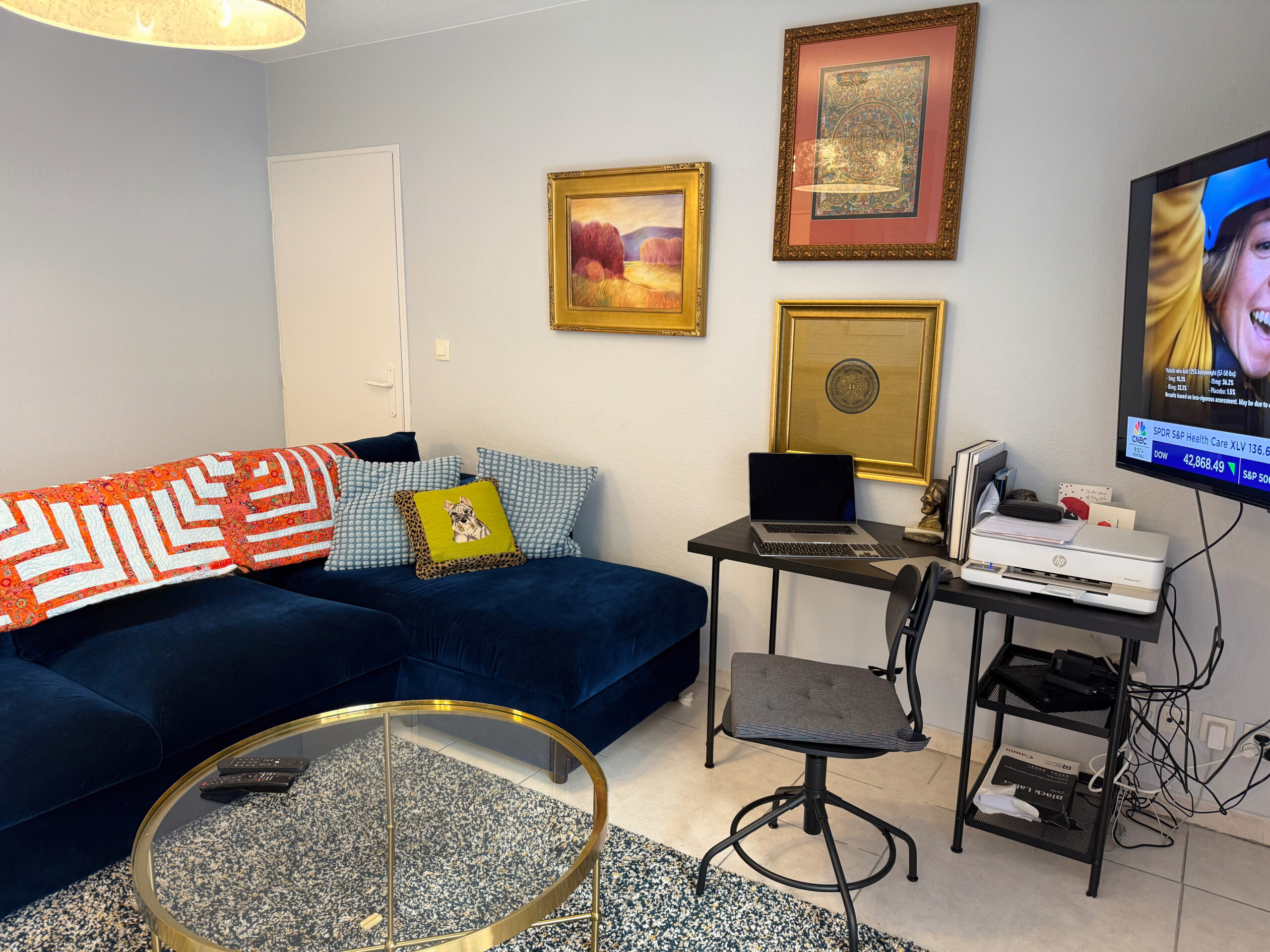 Our apartment is tiny by American standards, about 43 square meters or 463 square feet. However, the French measure differently than is done in the States. Only livable space is included. Not the room taken up by your kitchen cabinets or appliances. So, our apartment reads more like 600 -700 square feet. It’s a one bedroom, with open concept living room/kitchen area and a private outdoor area just, as if not bigger, than the apartment itself.